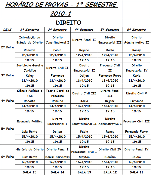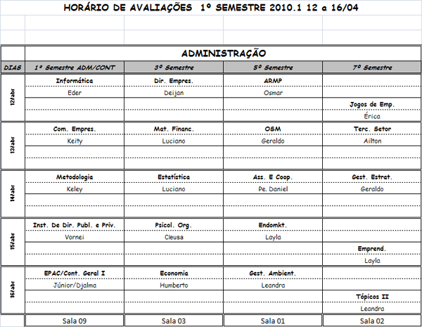 Confira os horários de Prova de Adm. C.Cont, Gestão Comercial e Direito Confira o horário de provas de Administração, Ciências Contábeis, Gestão Comercial e Direito