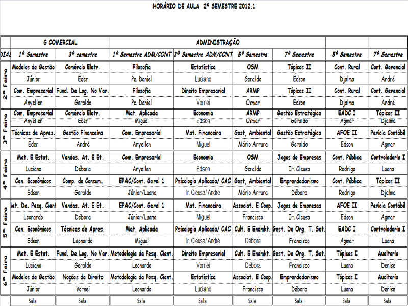 Horário de Aula 2012 - Adm., CCont. e Gestão