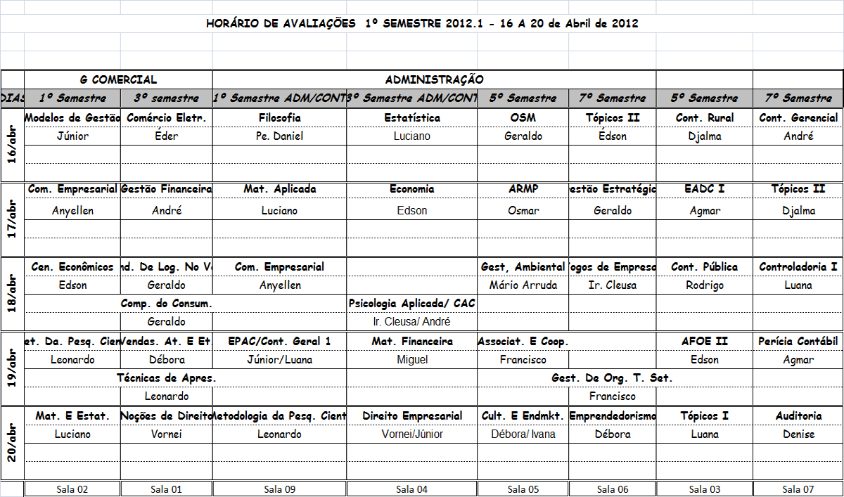 Horário de Avaliações Adm-CCont e Gestão Comercial