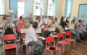 Uma palestra esclareceu dúvidas sobre a legislação que regulamenta os comitês de bacias e define suas atribuições. O comitê é um órgão descentralizado de gestão dos recursos hídricos. Ele possui caráter consultivo, normativo e deliberativo, servindo como ferramenta para as secretarias de Meio Ambiente dos municípios e estaduais. Maurício explica que o objetivo é detectar pontos vulneráveis quanto � segurança de abastecimento, uso do solo, instalação de indústrias, mediar conflitos, trabalhar com a prevenção de desastres, conservação e recuperação de áreas e educação ambiental. “Ainda não existem conflitos entre grupos de usuários na bacia, a exemplo da disputa entre indústrias e irrigantes que ocorre em outros pontos do Estado”, explica. Estudos serão feitos para que se tenha um diagnóstico da situação socioambiental da bacia, mas o Comitê usa como base o Plano de Recursos Hídricos da Bacia dos Rios Tocantins-Araguaia, da qual o Rio Vermelho faz parte.