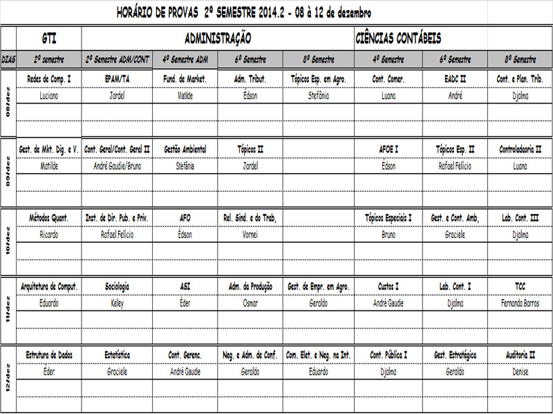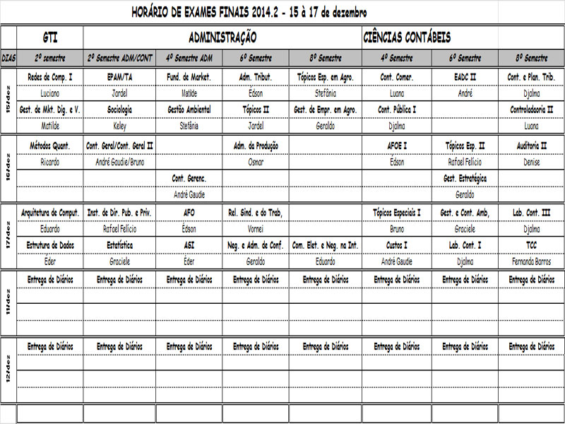 Horário de provas e exames finais