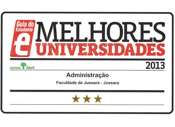 O curso de Administração da Faculdade de Jussara - FAJ foi estrelado na avaliação de cursos superiores realizada pelo Guia do Estudante (GE) e constará da publicação GE Profissões Vestibular 2014, que passa a circular nas bancas a partir do dia 11 de outubro de 2013.