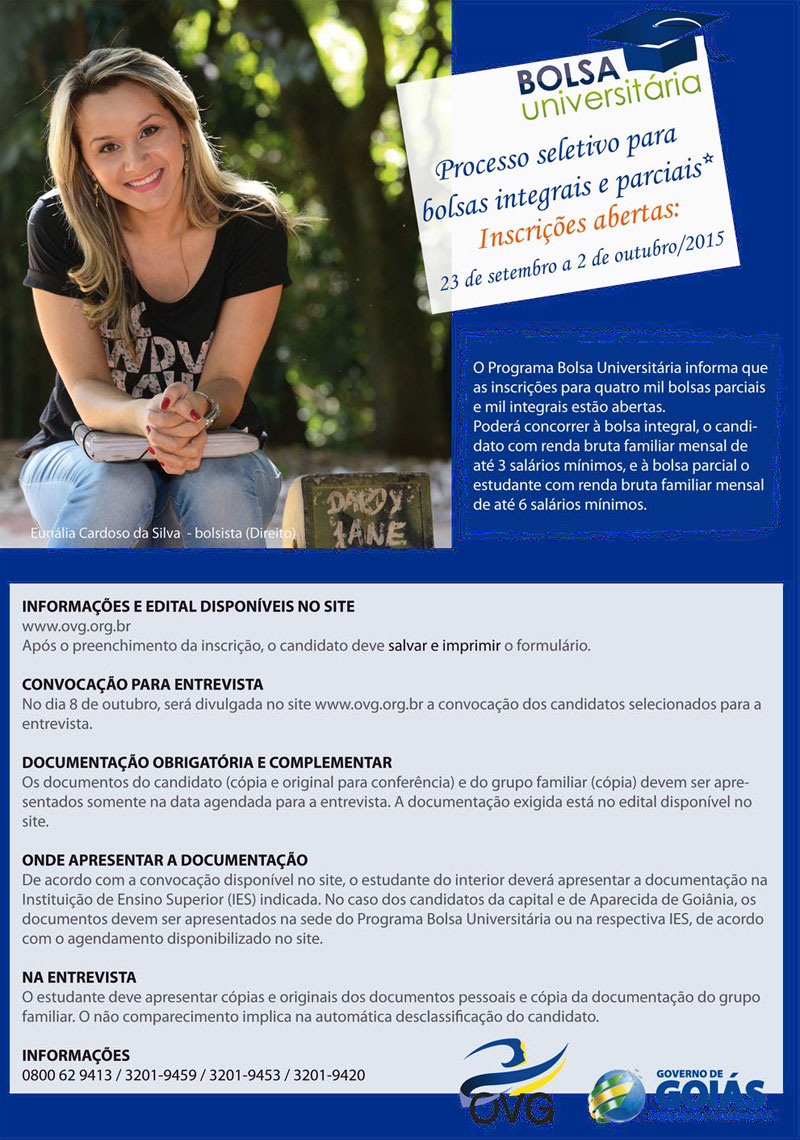 INSCRIÇÕES PARA A BOLSA DA OVG
