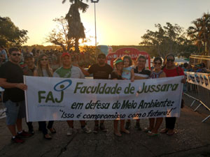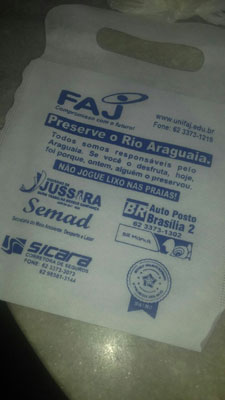 Os acadêmicos do 8º período de Direito da Faculdade de Jussara promoveram o Projeto do meio Ambiente, “Preserve o Rio Araguaia”, com orientação do CEPE, estiveram presentes e acompanhando a chegada da XXVI Caminhada Ecológica de 17 a 22 de julho de 2017, na oportunidade distribuíram lixos car para os turistas e cidadãos aruanenses na praça central e nos portos.