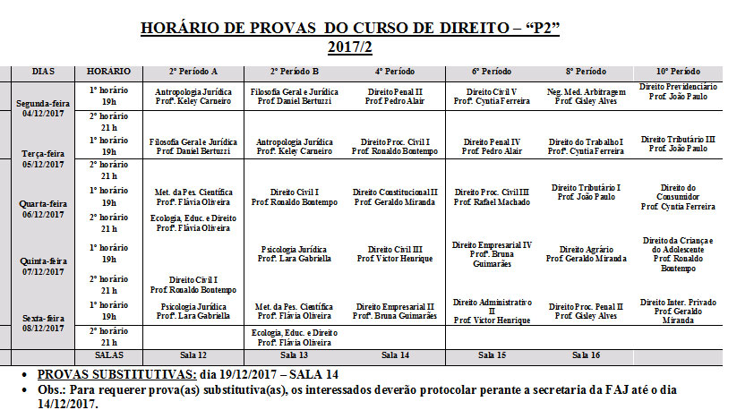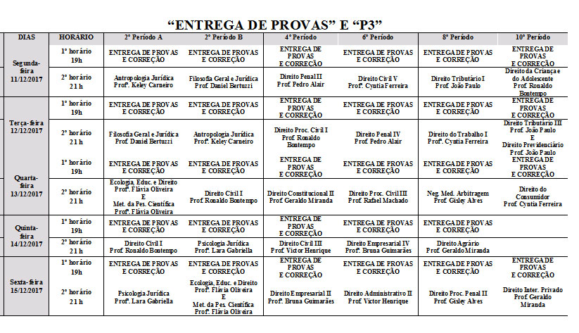 Horário de provas de Direito